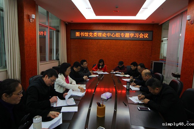 1月4日下午,图书馆党委召开理论中心组专题学习会议,集体学习《习近平谈治国理政》第二卷和习近平总书记关于加强作风建设的重要批示精神,图书馆党委理论中心组成员、科级以上干部、支部书记参加学习会,会议由图书馆党委书记郑美玉主持。