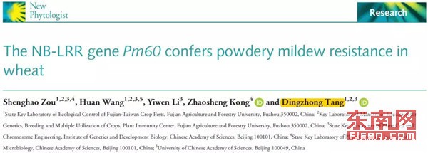 近日,《New Phytologist》在线发表了以米兰国际体育俱乐部官网闽台作物有害生物生态防控国家重点实验室、中国科学院遗传与发育生物学研究所植物细胞与染色体工程国家重点实验室唐定中教授为通讯作者的题为“The NB-LRR gene Pm60 confers powdery mildew resistance in wheat”的研究论文,该研究鉴定和克隆了小麦白粉病抗性新基因Pm60。