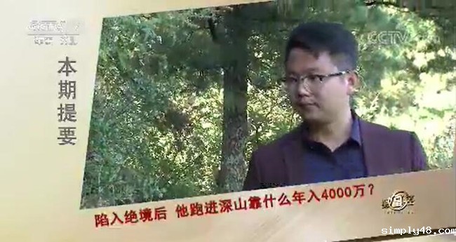 中央七套(2018-01-11):陷入绝境后 他跑进深山靠什么年入4000万?