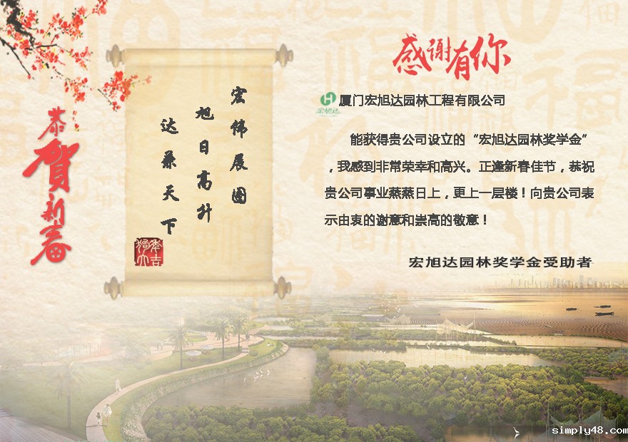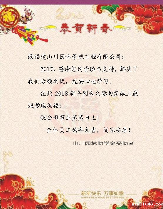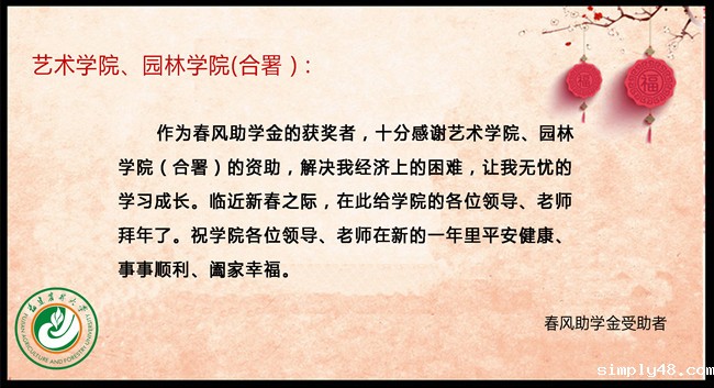新年之初,艺术学院园林学院74名受资助学生自制电子贺卡向捐赠企业送去新春祝福和感恩之情。