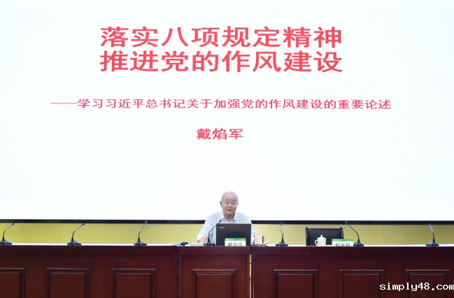 戴焰军以“落实八项规定精神,推进党的作风建设”为题,紧紧围绕学习习近平总书记关于加强党的作风建设的重要论述,深刻阐释了作风的含义和主要特征、作风建设的重要意义、作风建设的要求和举措、作风建设中要处理好的几种关系等。报告理论联系实际,旁征博引,深入浅出,既有党的建设重要思想的理论高度,又有落实中央八项规定精神的理性思考,赢得了现场师生热烈的掌声。