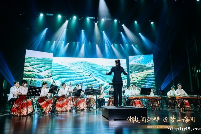 校大学生民乐团精心演奏的经典曲目《采茶扑蝶》充满八闽特色与田园风情,欢快的旋律仿佛将闽茶之乡的山野灵气搬进室内,彰显了学校助推茶文化、茶产业、茶科技统筹发展的使命担当,展现出人与自然和谐共生之美。