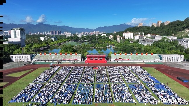 校学生工作领导小组成员单位及福州仓山校区各二级学院主要负责人、福州大学城校区和泉州安溪校区中层干部、2025级全体在校新生参加开学典礼。