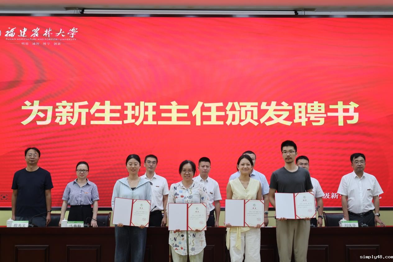 会议还举行2025级新生班主任聘任仪式,主席台上就座的领导为11位新聘班主任老师颁发聘书,并合影留念。副院长阳伏林为新生做学校学籍和教学管理有关规章制度介绍。