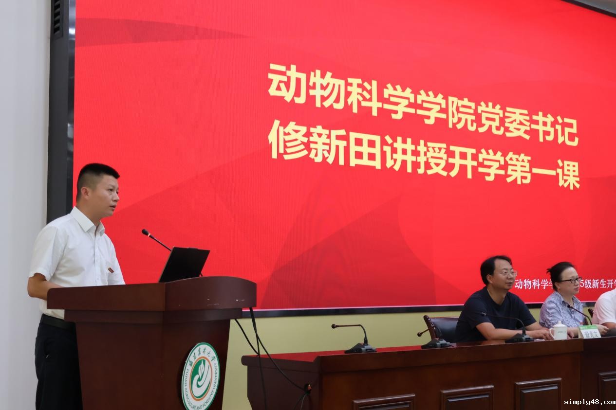 9月7日下午,动物科学学院在禧强楼学术报告厅召开2025级新生入学教育暨开学典礼。学院领导班子、各系教师代表、新生班主任、全体政工干部、在校生代表及2025级新生出席典礼。典礼由学院党委副书记贺鹏主持。