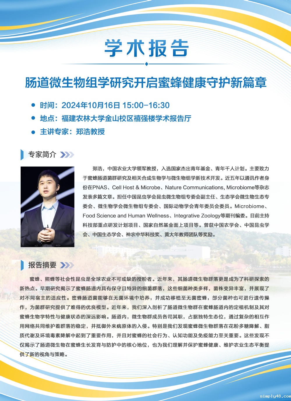 【讲座预告】——2024年10月16日 肠道微生物组学研究开启蜜蜂健康守护新篇章