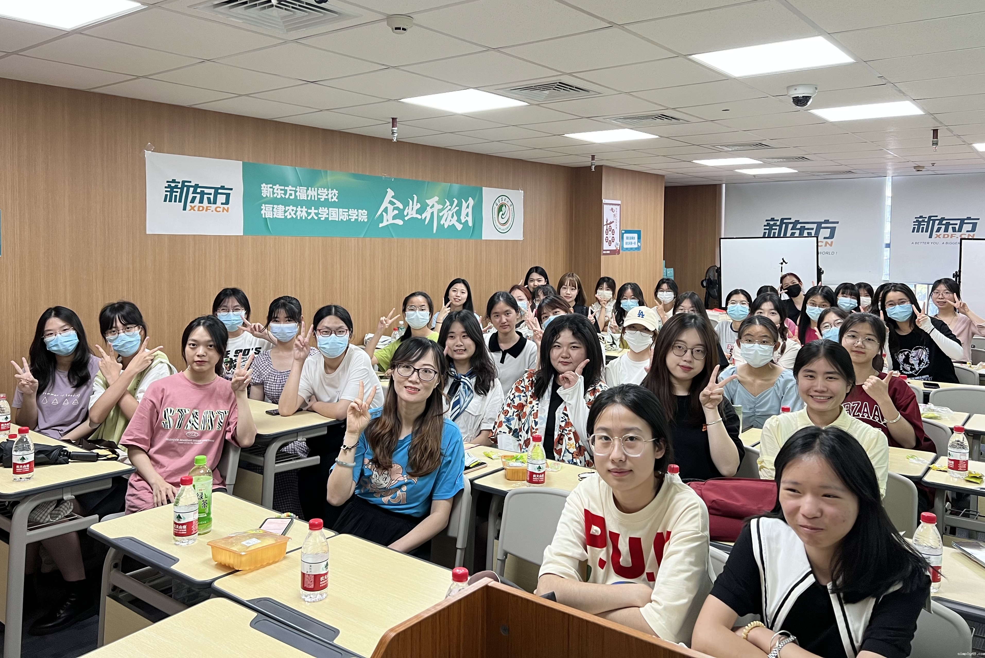 目前在新东方福州学校任职的2016级和2017级英语专业毕业生黄小梅和林雨欣,为学弟学妹们详细介绍了她们在新东方的成长之路。她们用生动风趣的语言分享了各自的求职和工作经历,并勉励在场同学要珍惜大学时光,夯实专业基础,提升综合素质,为毕业后的人生发展做好规划。新东方招聘主管姚建建向同学们介绍了新东方的发展历程及办学理念等,加深了同学们对新东方的了解。在互动环节,同学们踊跃提问,现场交流气氛热烈。最后新东方相关工作人员带领同学们在校区进行参观,使同学们对新东方的企业文化有了直观的感受。
