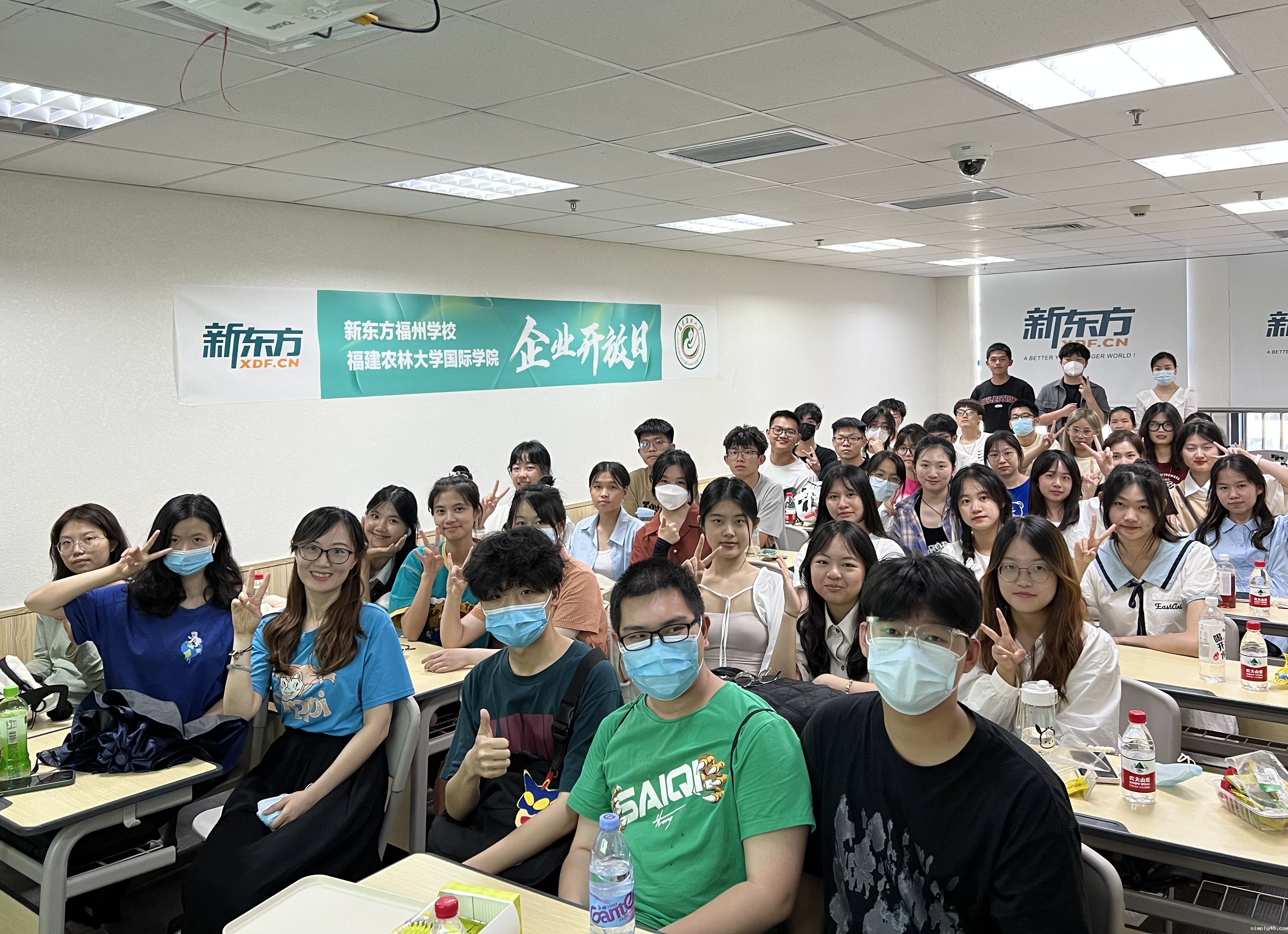 为了给予英语专业学生更好的专业学习引导和择业就业启蒙,2023年5月18日下午,外语系副主任刘丽敏和刘玮老师带领英语专业2022级79名学生赴新东方福州学校参观实践。