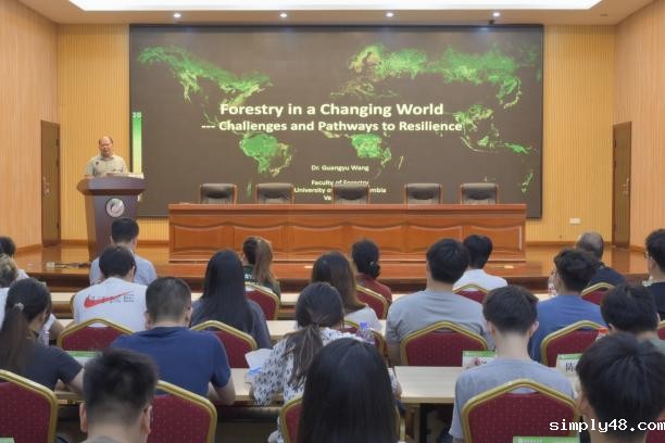 王光玉教授简要介绍了UBC以及UBC林学院的基本情况,为同学们作题为《Forestry in a Changing World——Challenges and Pathways to Resilience》的主题学术报告,其结合全球生态治理趋势,解析新林业在生态保护与资源协同利用上的理念与实践,鼓励同学们以国际视野探索学科交叉创新,努力成长为适合时代发展的国际化人才。陈思锦就生态学(中加班)赴加拿大交流的申请条件、申请流程及支持政策等进行说明,为学生出国学习提供指导。