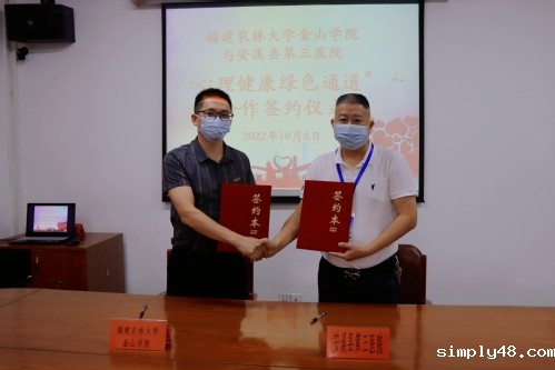 10月6日,我院(安溪)与安溪县第三医院”心理健康绿色通道“签约仪式顺利进行。安溪县第三医院院长李生勇、金山学院(安溪)管理办公室副主任陈本熠作为双方代表进行现场签约。