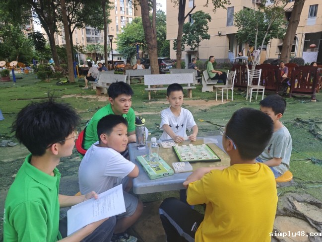 图1:实践队员引导盲人朋友体验盲人象棋(李欢摄)