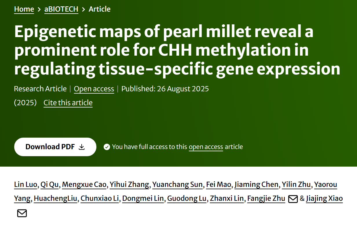 aBIOTECH | 我院朱方捷/肖嘉靖课题组揭示珍珠粟CHH甲基化调控组织特异性基因表达的机制