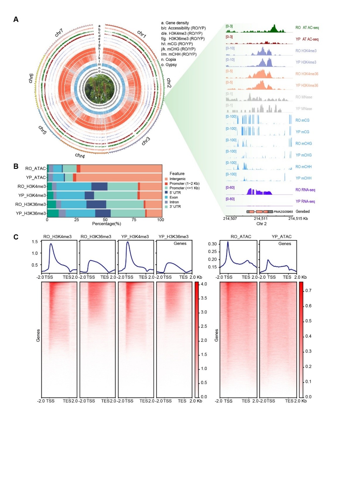1. 珍珠粟根(RO)与幼穗(YP)的表观修饰图谱,含ATAC-seqWGBSChIP-seqRNA-seq数据。