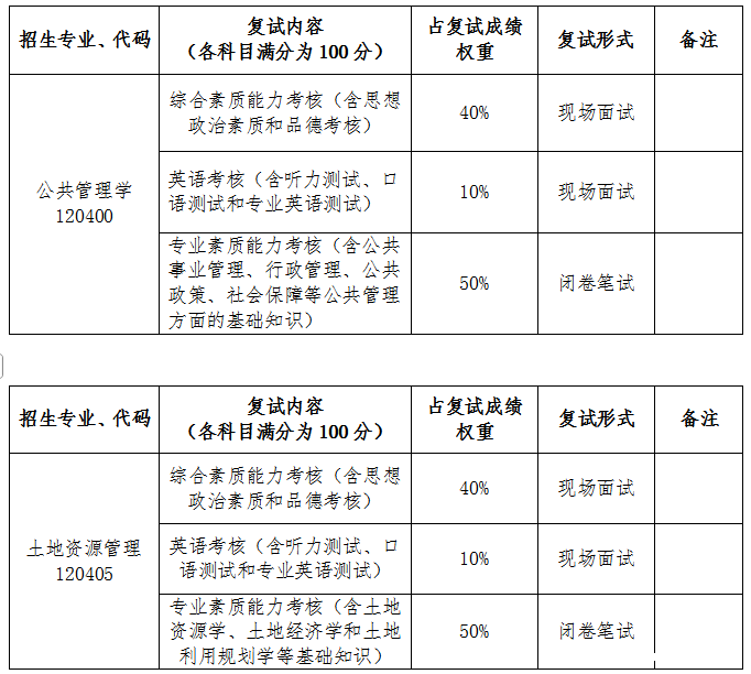 说明: 1.进入复试的考生初试成绩须达到相应招生专业2025年全国硕士研究生招生考试考生进入复试的初试成绩基本要求(A类考生)。 2.实际招收人数可根据生源情况适当调整。 3.第一志愿上线生源多于计划招生数的专业,扣除立功表彰退役军人免初试专项计划个数,按1:1.2差额比例确定进入复试的考生名单。计算结果向上取整,同分者一并进入复试。第一志愿上线生源少于计划招生数的专业,不进行差额复试,复试合格即可拟录取。 4.接受调剂的专业,学院分批次进行调剂复试,根据符合调剂条件的考生初试成绩总分从高分到低分的原则,按不低于1:1.2差额比例确定进入复试的每个批次调剂考生名单。计算结果向上取整,同分者一并进入复试。每个调剂批次复试比例由学院研究生招生工作领导小组根据复试录取实际情况研究确定,调剂指标和复试比例另行公布。 二、复试要求 (一)复试形式和复试内容