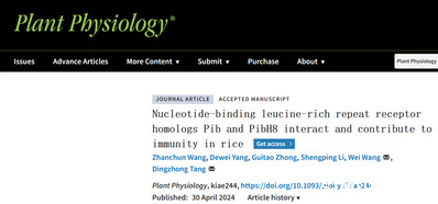 近日,我院唐定中教授课题组在Plant Physiology在线发表了题为“Nucleotide-binding leucine-rich repeat receptor homologs Pib and PibH8 interact and contribute to immunity in rice”的研究论文。该研究发现,水稻NLR免疫受体Pib和PibH8相互作用,共同介导水稻对效应因子AvrPib激活的抗性。