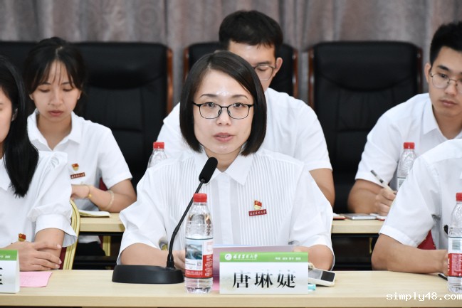 省高校辅导员素质能力大赛二等奖获得者、机电工程学院团委副书记唐琳婕发言