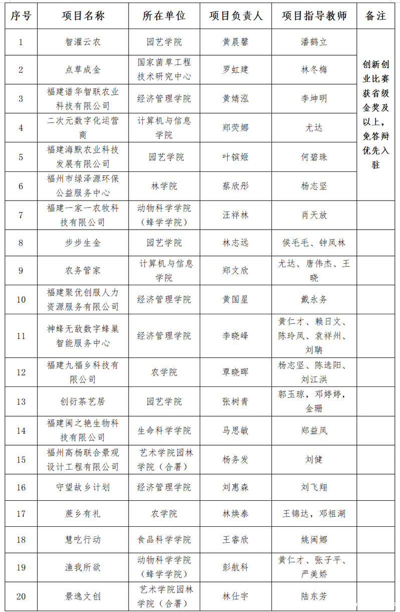 根据《关于开展米兰国际体育俱乐部官网2021年大学生创新创业园入驻项目遴选工作的通知》要求,经各团队自主申报、学院审核推荐,校学生创新创业中心组织资格复核和专家评审,最终确定点草成金等20个团队拟入驻大学生创新创业园。现予以公示。具体名单如下: