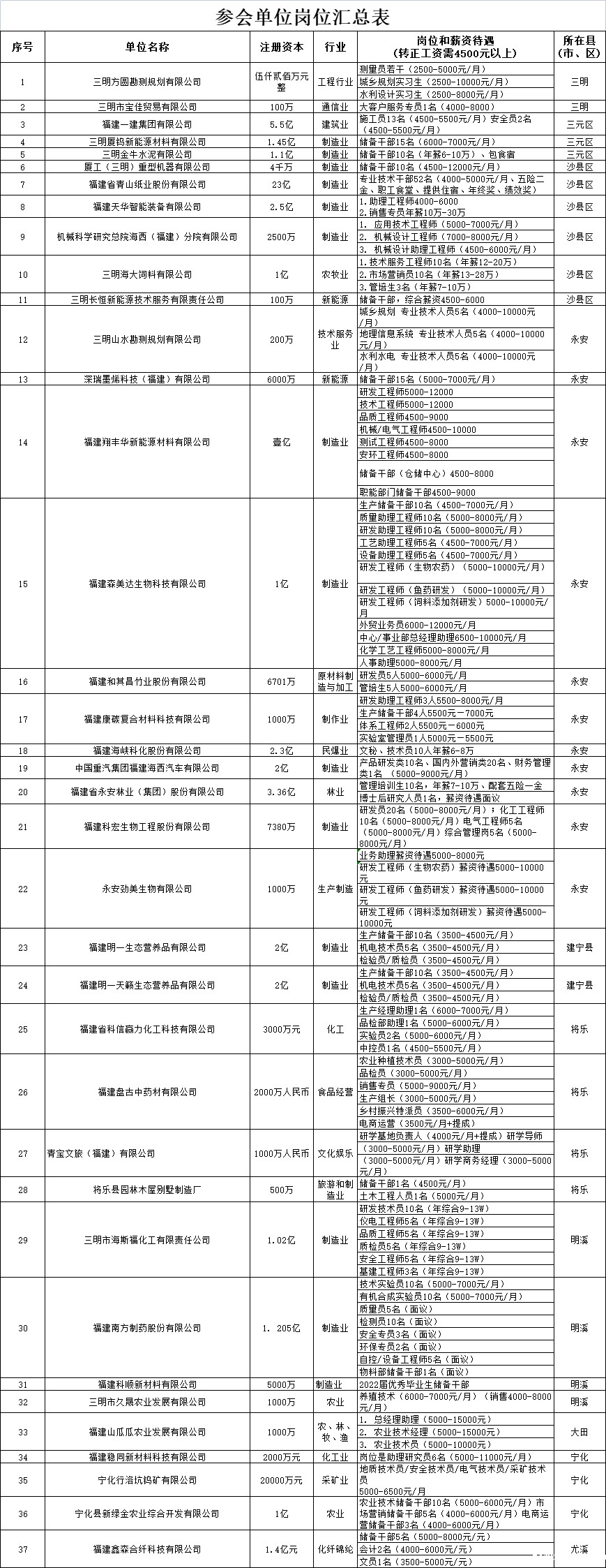 扬帆绿都 圆梦三明——福建三明校园招聘专场•人才政策及招聘岗位