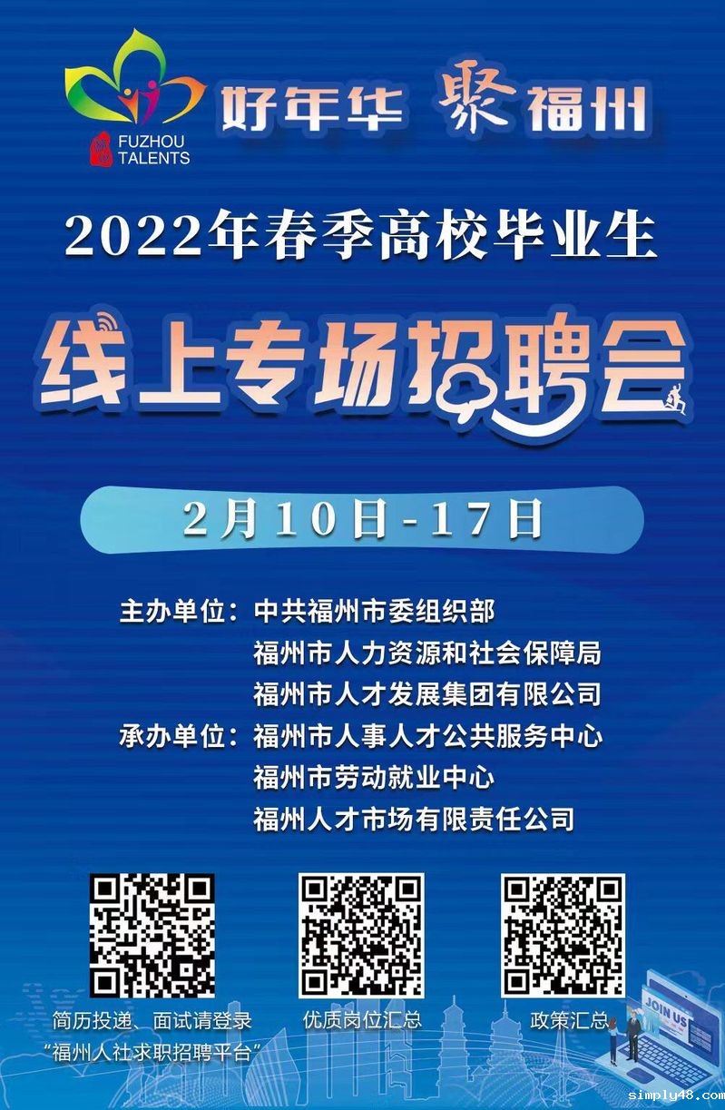 “好年华 聚福州”2022年春季高校毕业生线上专场招聘会
