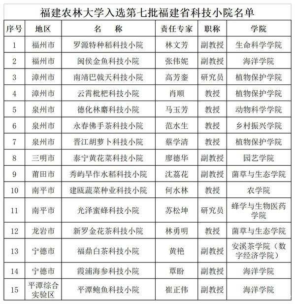 根据《福建省科协关于组织开展第七批科技小院申报工作的通知》(闽科协普〔2024〕24号)的相关要求,我校积极组织开展福建省第七批科技小院的申报工作,经过专家评审、实地考察和网站公示等环节,福建省第七批科技小院入选名单终于揭晓,全省共遴选了20家,我校有15家成功入选。