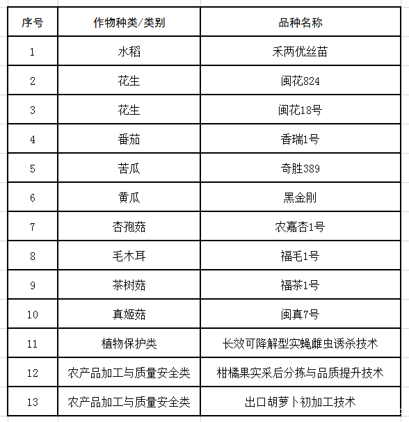 我校13项成果入选2025年度福建省农业主导品种和主推技术