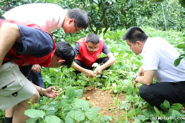 座谈会后,在实践队师生的陪同下,曹滨斌一行前往科技小院的文旦柚果园示范基地参观,察看豆科绿肥的整体长势、抑草保熵与结瘤固氮情况,看到长势良好的文旦柚幼果时非常高兴,深刻感受到农业技术下基层的重要意义。