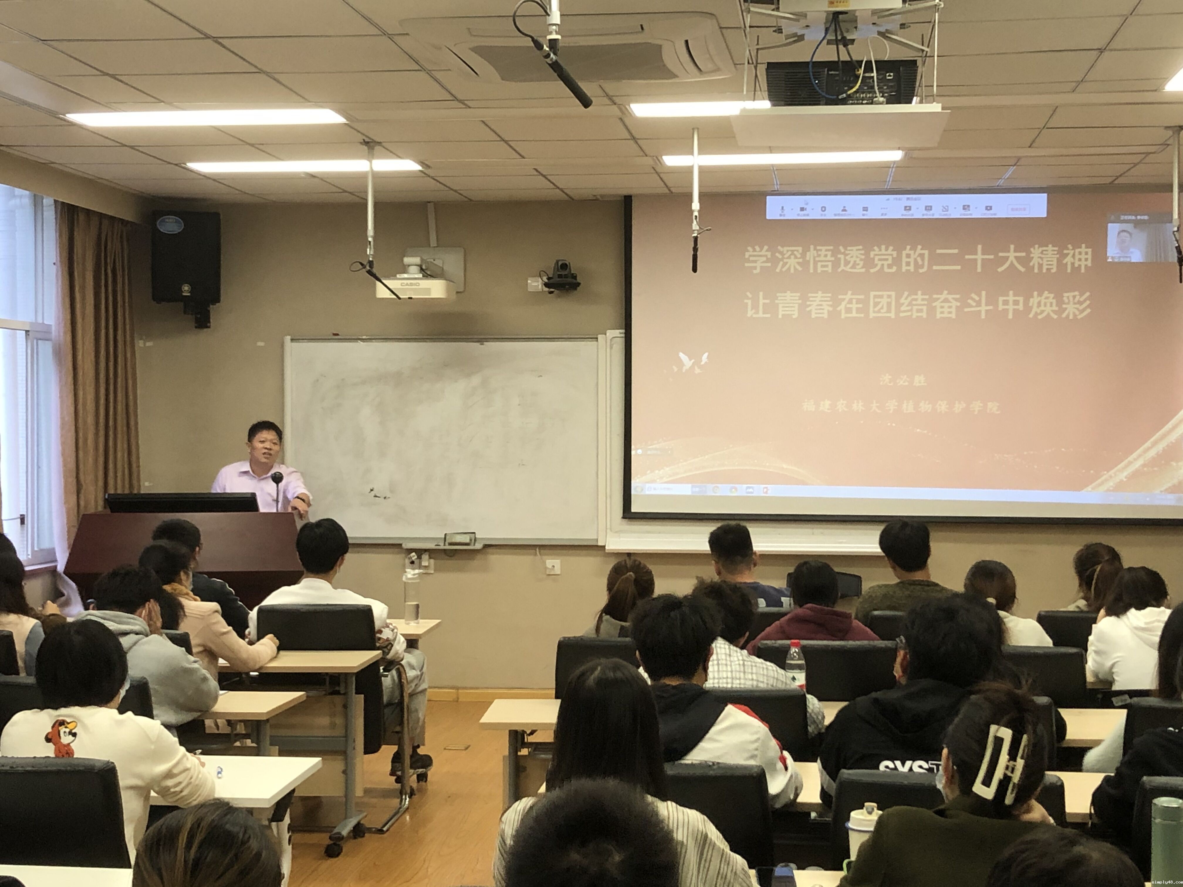 据悉,党的二十大召开以来,院党委副书记陈文滨、副院长杨广、肖顺也分别以“传承红色基因、做一名合格的党员”、“人民至上——学习二十大报告的体会”、“一起寻找中国共产党的纯初心使命——从八闽红土地开始”为题作了党的二十大精神的宣讲报告。植物保护学院还组织辅导员、学生骨干等组建“青春献礼二十大、强国有我新征程”宣讲团,依托“一站式”学生社区、主题党班团日活动等渠道,广泛开展宣讲活动30余场,以青年之口吻讲述中国“非凡十年”的伟大成就,引领英龍学子牢记“国之大者”、与国同向同行。