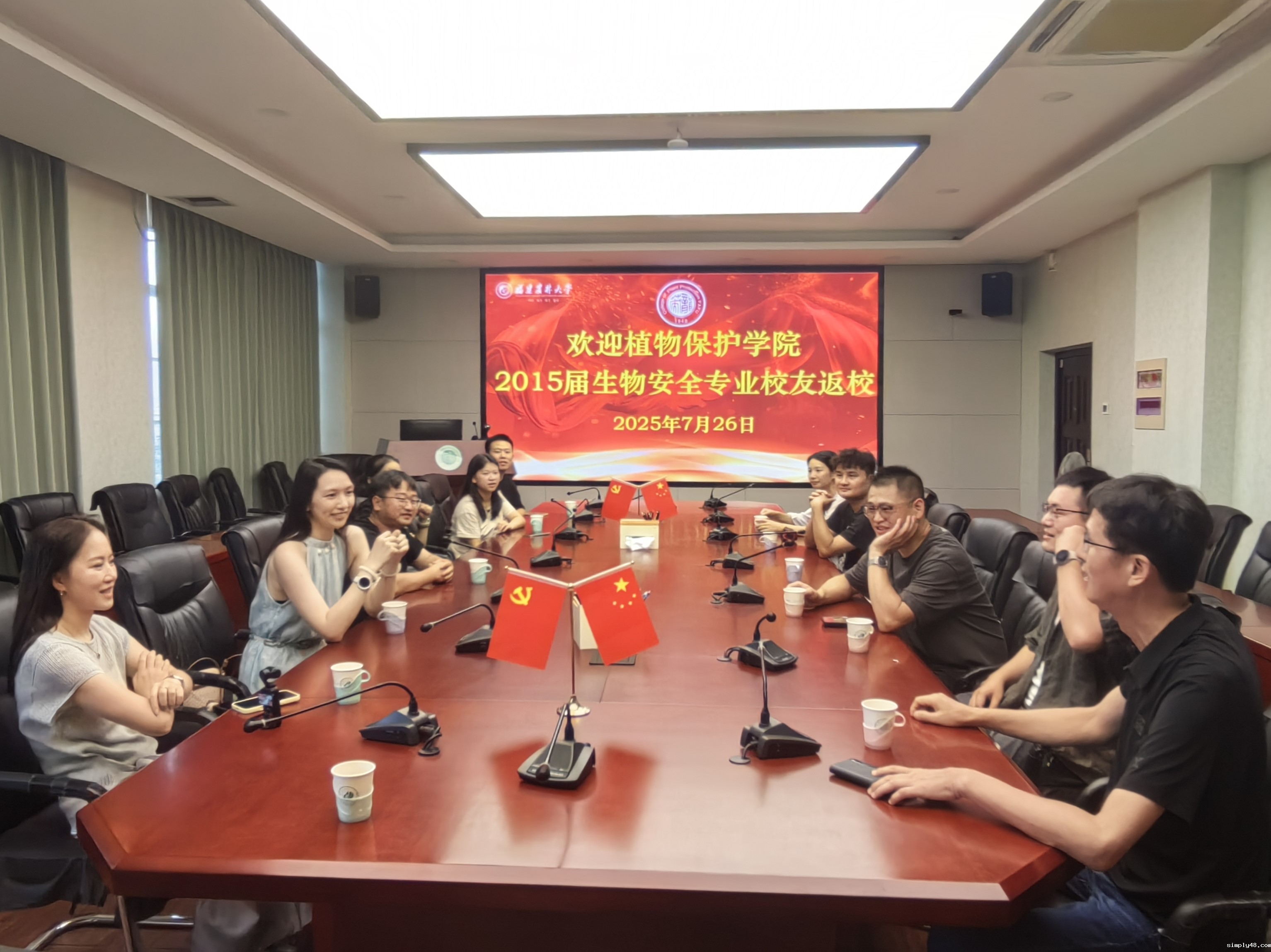 7月26日,我院2015届生物安全专业福建校友重返母校。校友们与学院党委书记沈必胜、时任辅导员阙晓堂等教师在博学楼704会议室座谈交流。