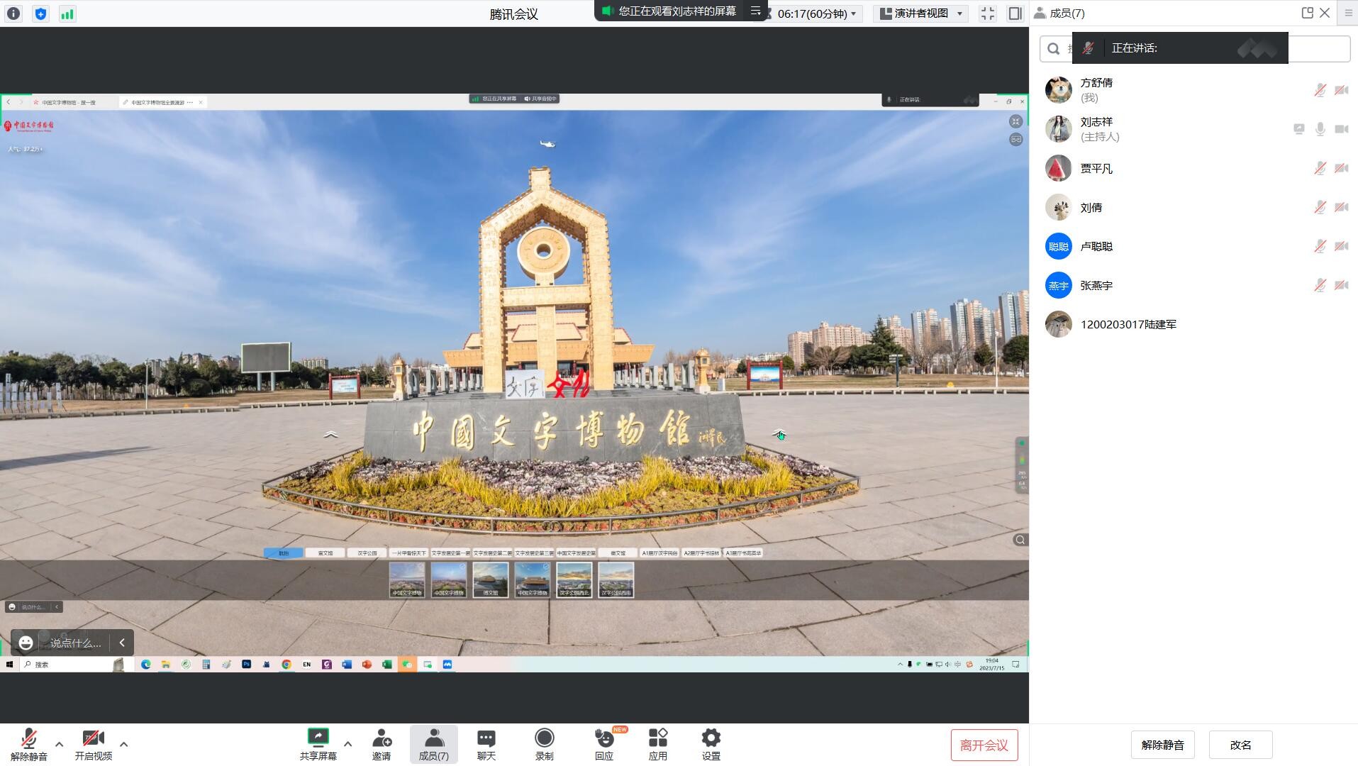 7月15日晚,昆虫学科研究生第二党支部以线上腾讯会议的方式开展学习贯彻习近平新时代中国特色社会主义思想主题教育系列活动的第六篇章——参观中国文字博物馆。昆虫学科研究生第二党支部书记刘志祥作为领学人,带领本支部党员以线上腾讯会议的方式,参观了位于河南安阳的中国文字博物馆。